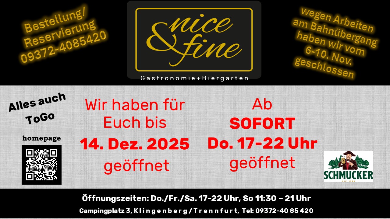 ![]() ![]() Impressum: Allgemeine Angaben Internet: www.nice-fine.de Vertreten durch: Funda Höflich Einzelunternehmen Anschrift und Kontakt Campingplatz 3 63911 Klingenberg / Trennfurt Telefon: 09372-4085420 Email: info@nice-fine.de Steuernummer: 202/229/60542 Ust-ID: DE453964456 Die Inhalte unserer Seiten wurden mit größter Sorgfalt erstellt. Für die Richtigkeit, Vollständigkeit und Aktualität der Inhalte können wir jedoch keine Gewähr übernehmen. Wir sind als Diensteanbieter jedoch nicht verpflichtet, übermittelte oder gespeicherte fremde Informationen zu überwachen oder nach Umständen zu forschen, die auf eine rechtswidrige Tätigkeit hinweisen. Verpflichtungen zur Entfernung oder Sperrung der Nutzung von Informationen nach den allgemeinen Gesetzen bleiben hiervon unberührt. Eine diesbezügliche Haftung ist jedoch erst ab dem Zeitpunkt der Kenntnis einer konkreten Rechtsverletzung möglich. Bei Bekanntwerden von entsprechenden Rechtsverletzungen werden wir diese Inhalte umgehend entfernen. Urheberrecht Die durch die Seitenbetreiber erstellten Inhalte und Werke auf diesen Seiten unterliegen dem deutschen Urheberrecht. Die Vervielfältigung, Bearbeitung, Verbreitung und jede Art der Verwertung außerhalb der Grenzen des Urheberrechtes bedürfen der schriftlichen Zustimmung des jeweiligen Autors bzw. Erstellers. Downloads und Kopien dieser Seite sind nur für den privaten, nicht kommerziellen Gebrauch gestattet. Soweit die Inhalte auf dieser Seite nicht vom Betreiber erstellt wurden, werden die Urheberrechte Dritter beachtet. Insbesondere werden Inhalte Dritter als solche gekennzeichnet. Sollten Sie trotzdem auf eine Urheberrechtsverletzung aufmerksam werden, bitten wir um einen entsprechenden Hinweis. Bei Bekanntwerden von Rechtsverletzungen werden wir derartige Inhalte umgehend entfernen. Datenschutzerklärung (PDF) |